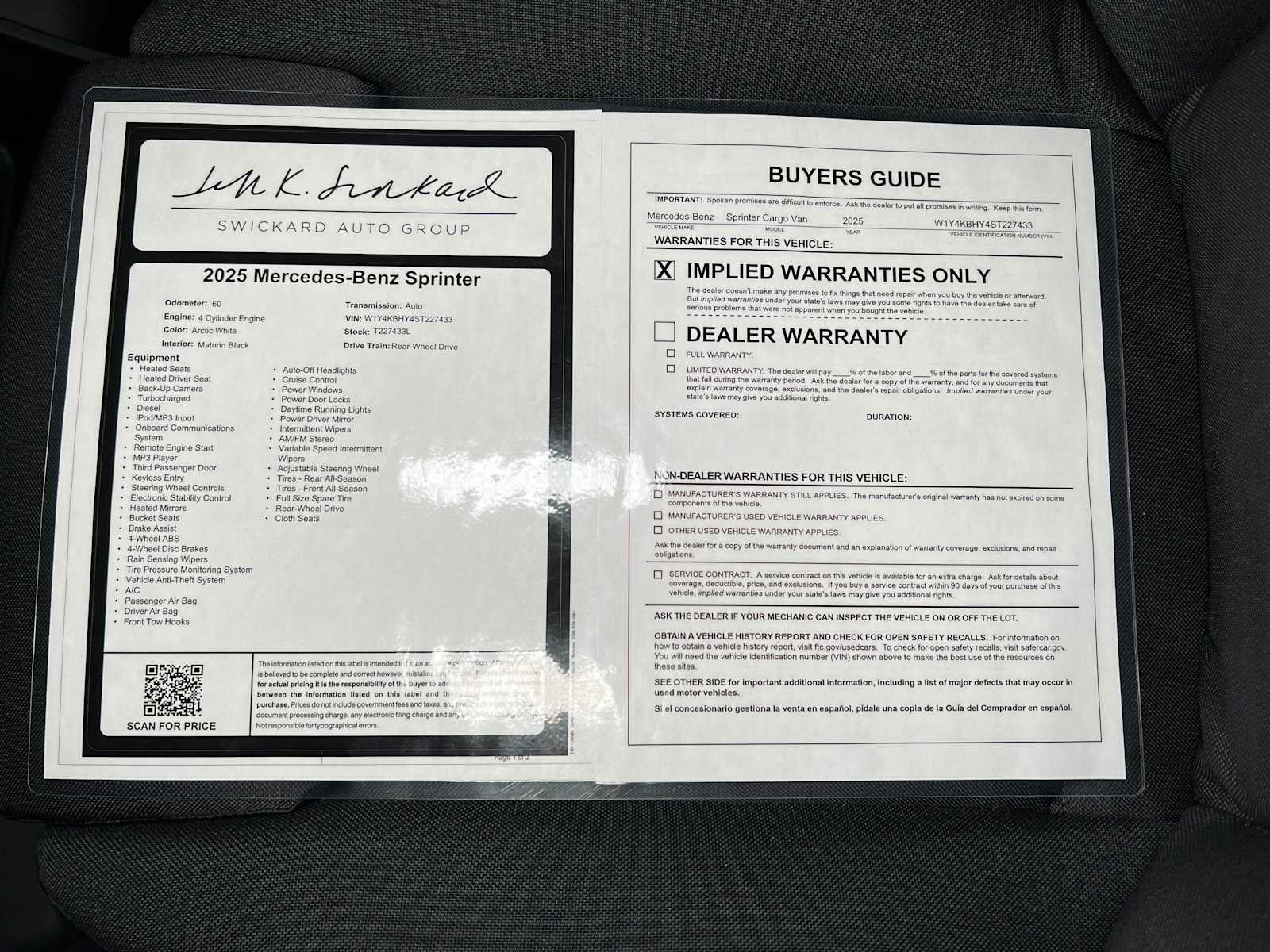 - Vehicle Name: Mercedes-Benz Sprinter Cargo Van