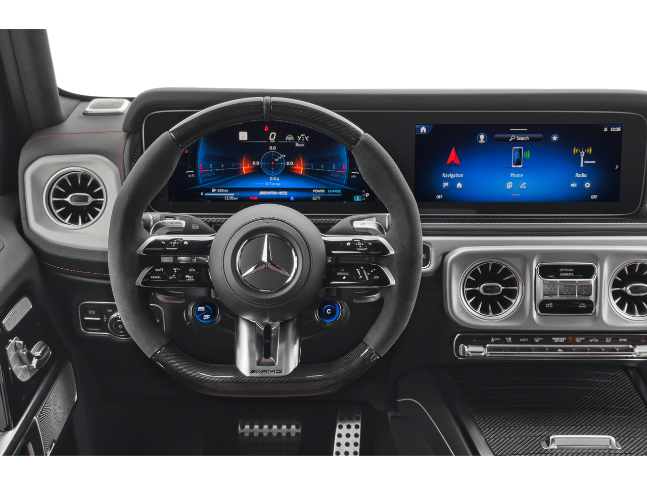 WHEELS: 22 AMG® MATTE BLACK CROSS-SPOKE FORGED Tires: 295/40R22, NIGHT PACKAGE MAGNO Wheel Arches & Bumpers in Black Magno, MANUFAKTUR Black Running Boards, Spare Wheel Cover in Night Black magno, Under Guard Protection Night Black magno, AMG®-Specific Exhaust System in Black, Brush Guard in Black Magno, WHEEL LOCKING BOLTS, Leather Seats