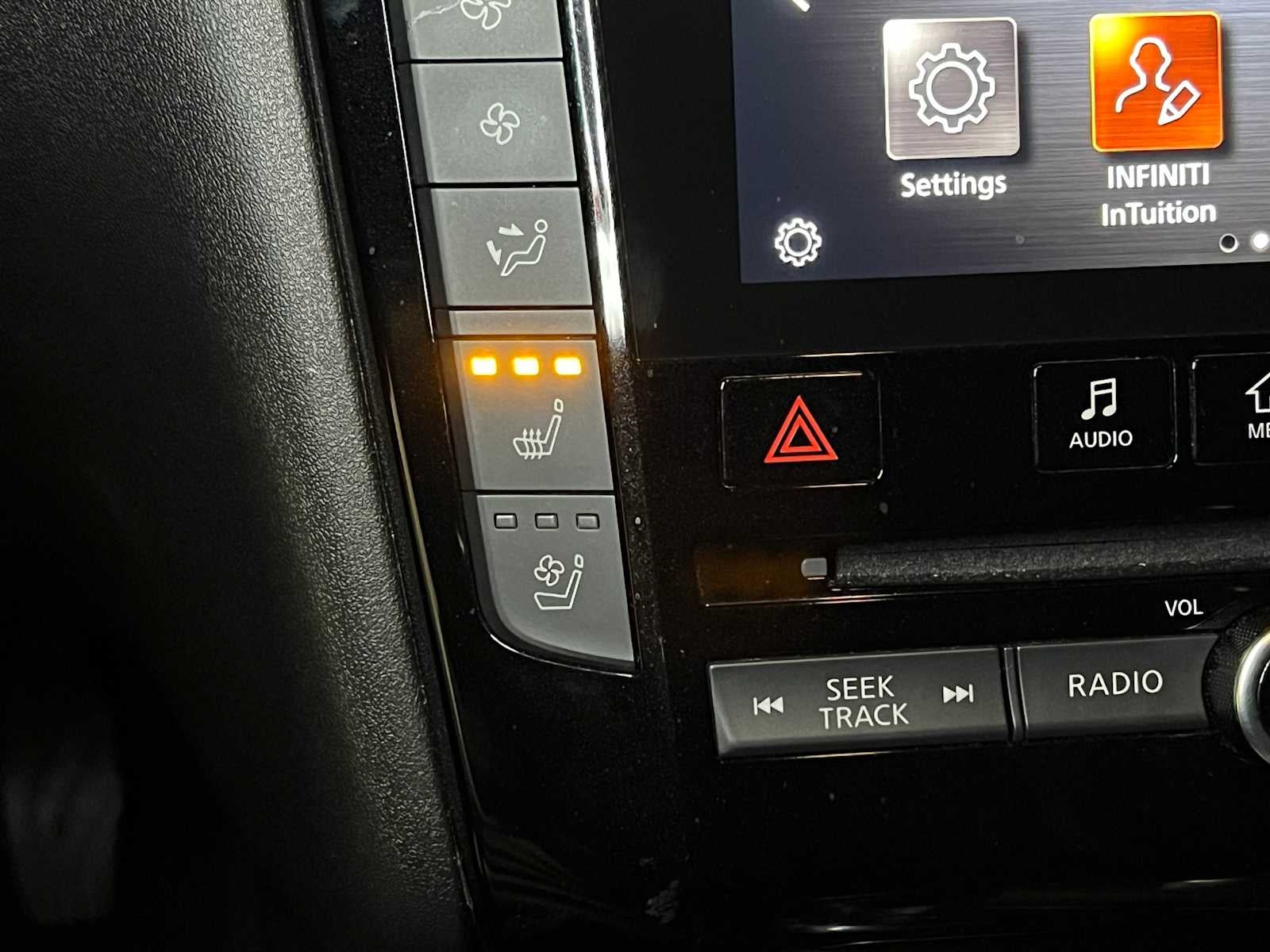 - Radio: Bose Performance Series Audio System -inc: 16 speakers, metallic speaker grilles on tweeters, INFINITI InTouch, INFINITI InTouch services, INFINITI InTouch dual display system w/upper 8" and lower 7" HD touch screens, wireless Apple CarPlay, Android Auto, SiriusXM radio w/advanced audio features and 90-day complimentary trial, INFINITI voice recognition, Siri Eyes Free, Wi-Fi hotspot, active noise cancellation, navigation w/3D building graphics, 5 year complimentary access to premium traffic and MapCare, SiriusXM Traffic w/3 month complimentary trial access to real-time traffic information and SiriusXM Travel Link w/3 month complimentary trial access to weather, fuel prices, stock prices, sport scores, movie listings and parking