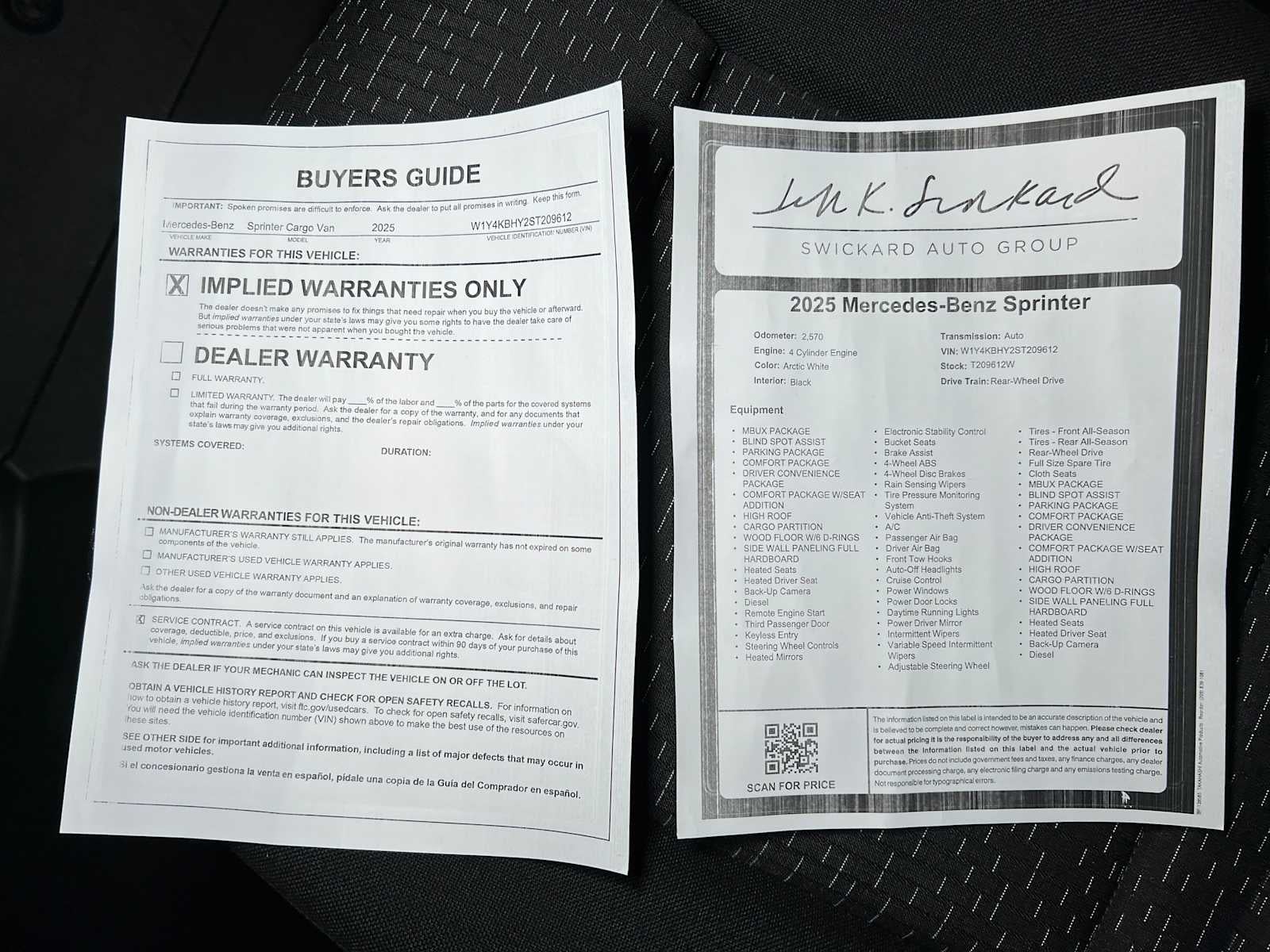 - Vehicle Name: Mercedes-Benz Sprinter Cargo Van