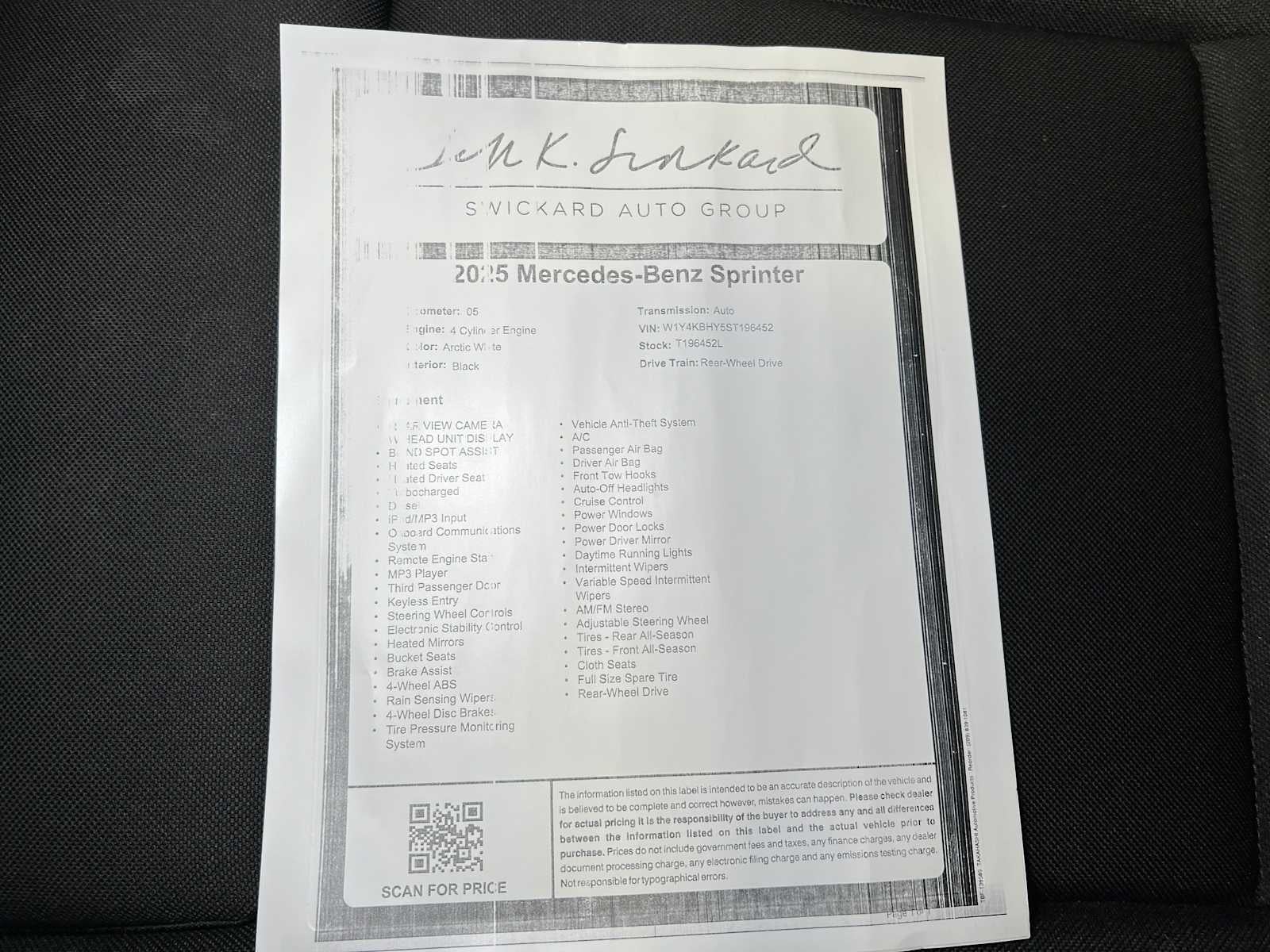 - Vehicle Name: Mercedes-Benz Sprinter Cargo Van
