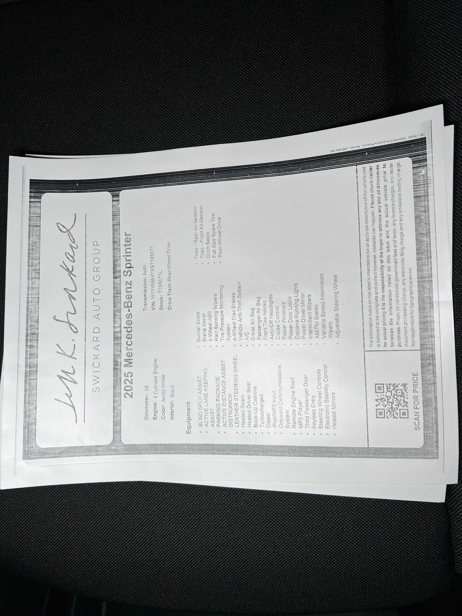 Only valid on 2025 Mercedes-Benz Sprinter Cargo and Crew vans (excluding eSprinter Cargo models). Qualified commercial customers only. 0.0% APR financing for 24 months at $41.67 per month, per $1,000 financed, 0.0% APR financing for 48 months at $20.83 per month, per $1,000 financed and 0.0% APR financing for 60 months at $16.67 per month, per $1,000 financed. This offer is not combinable with any other offers from Mercedes-Benz USA, LLC (MBUSA). Excludes leases and balloon contracts and National Fleet customers. Available only at participating authorized Mercedes-Benz Vans dealers through Mercedes-Benz Financial Services (MBFS). Must take delivery of vehicle by March 31, 2026. Specific vehicles are subject to availability and may have to be ordered. Subject to credit approval by MBFS. Actual rates, terms, down payment, and program eligibility will be determined by MBFS Credit Team based upon creditworthiness of customer. Program rates or terms may be changed or the program may be terminated at any time at the sole discretion of MBFS. Offer is subject to limits on the total amount financed. See your authorized Mercedes-Benz Vans dealer for complete details on this and other finance offers. Offer valid through March 31, 2026. Can not combine with internet pricing