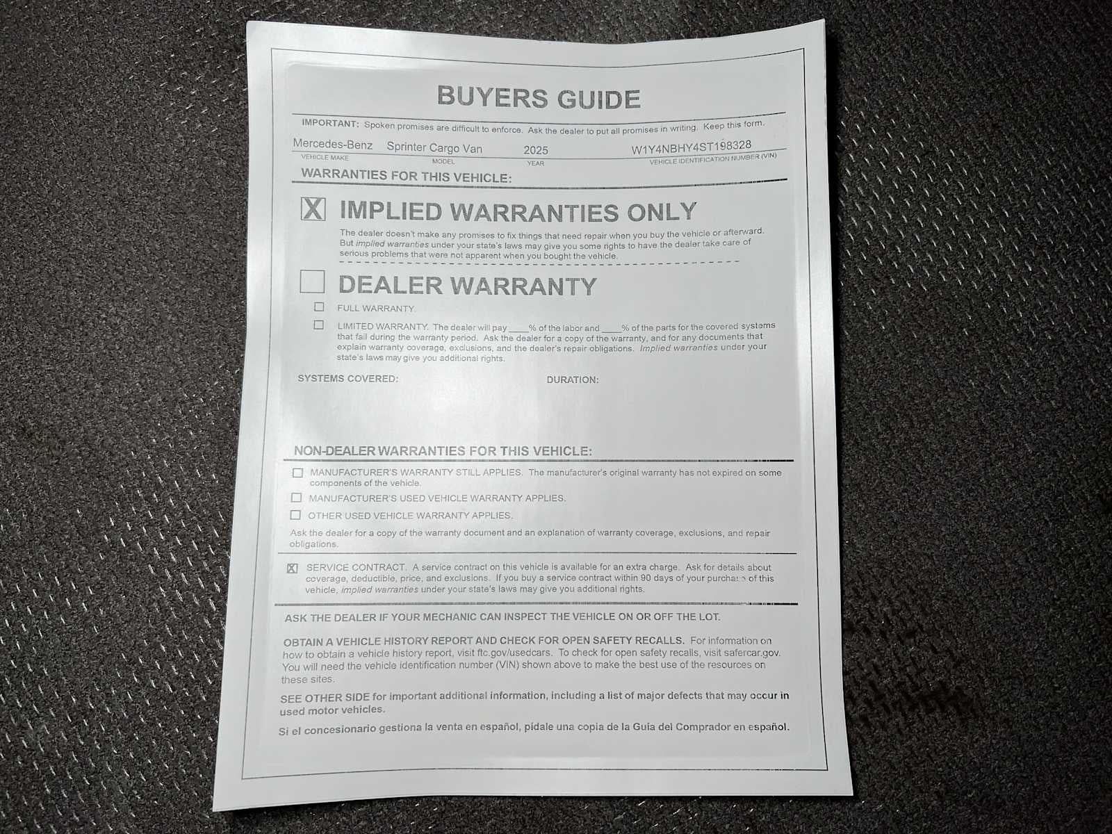 - Vehicle Name: Mercedes-Benz Sprinter Cargo Van